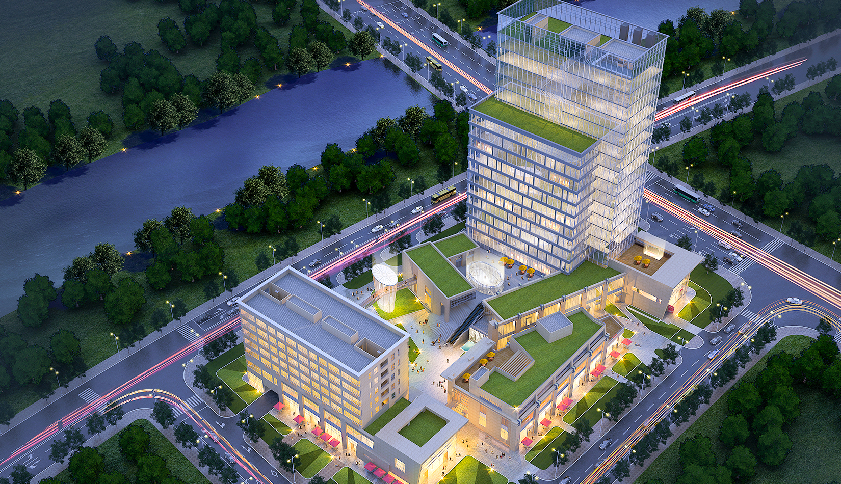 本項(xiàng)目包含商業(yè)、酒店、公寓、辦公、電影院等功能,作為一個商業(yè)綜合體滿足中德生態(tài)園周邊居民的生活、