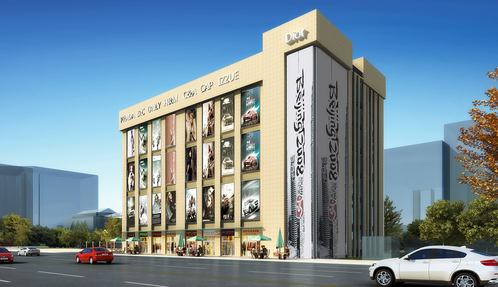 2)功能分區(qū)明確,車(chē)流線與商業(yè)流線盡量減少交差