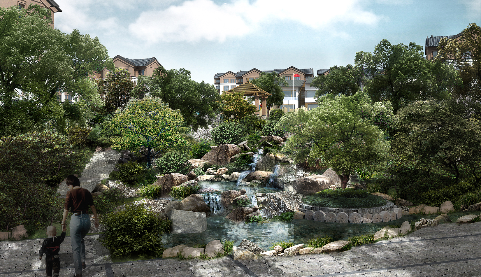 以“鄉(xiāng)村振興” 為背景,以“藏馬山居生活”為目標(biāo)核心,項(xiàng)目把東方田園與住區(qū)生活融為一體、貫穿自然生態(tài)、海綿城市的設(shè)計(jì)理念。景觀設(shè)計(jì)挖掘藏馬山的特色文化,延續(xù)當(dāng)?shù)鼐G色生態(tài)、山野趣味的自然風(fēng)貌,通過(guò)場(chǎng)景化的展示,融入到景觀設(shè)計(jì)中,打造特點(diǎn)鮮明、各有特色的入口體驗(yàn)、商業(yè)街區(qū)、山居生活三大板塊。